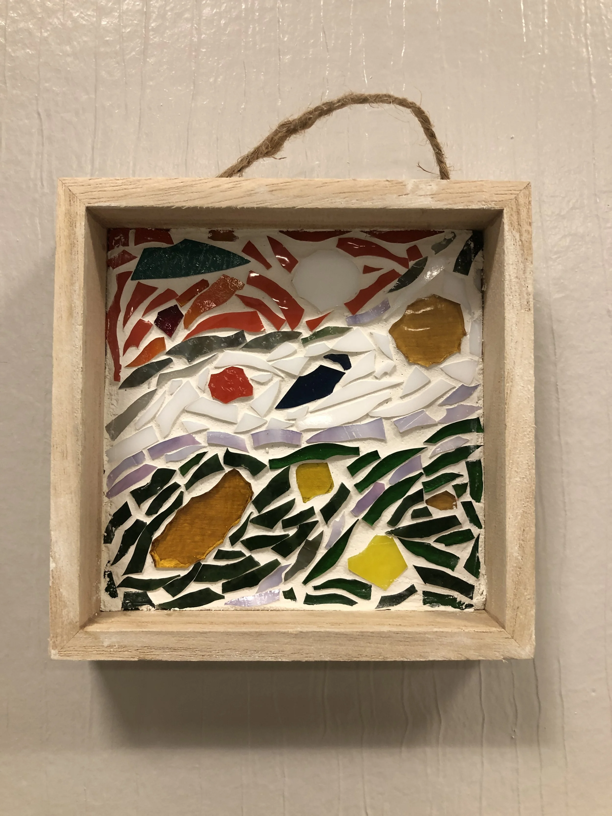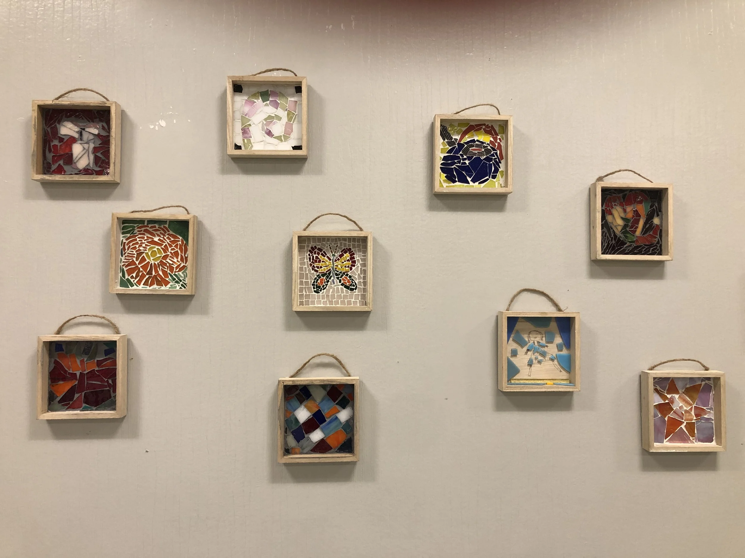 Our Show Case, welcoming family and friends to view the workshops Mosaics.